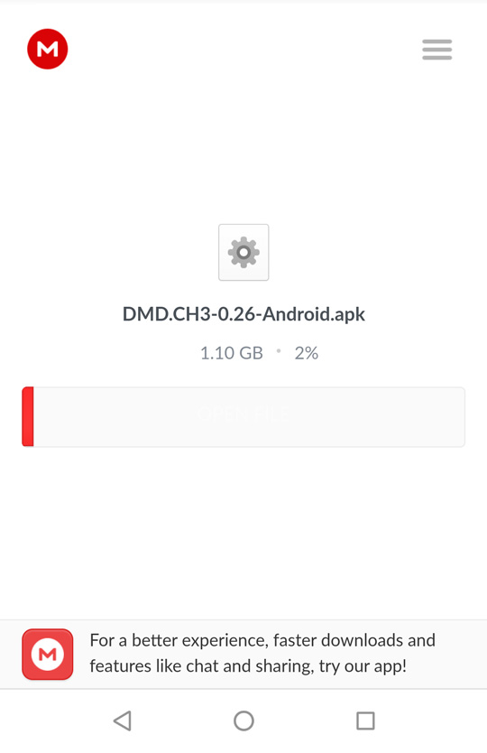 In case of DMD v.26, the apk’s filesize is 1.10gb. If your apk is smaller than 1.1gb, it means the download has stopped at some point and your apk file is damaged. You’ll have to download the file again otherwise you won’t be able to install the game correctly.