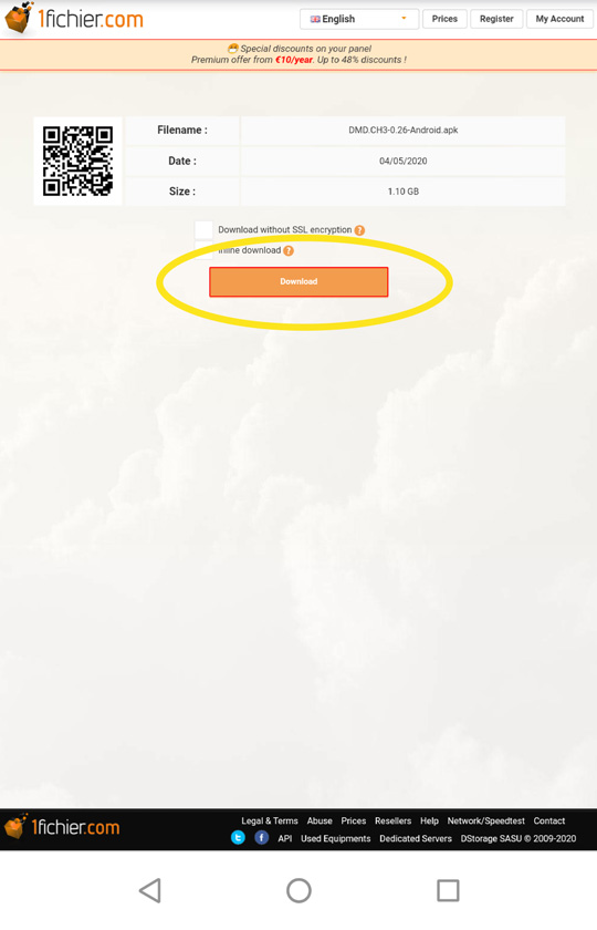IMPORTANT: Once the download is completed, always check that the apk you’ve downloaded is the same filesize as the one from MEGA, 1fichier, etc.